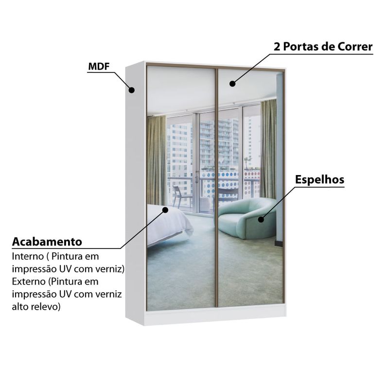 - 2 Portas de Correr, deslizantes com sistema de freio, sendo as 2 com espelho