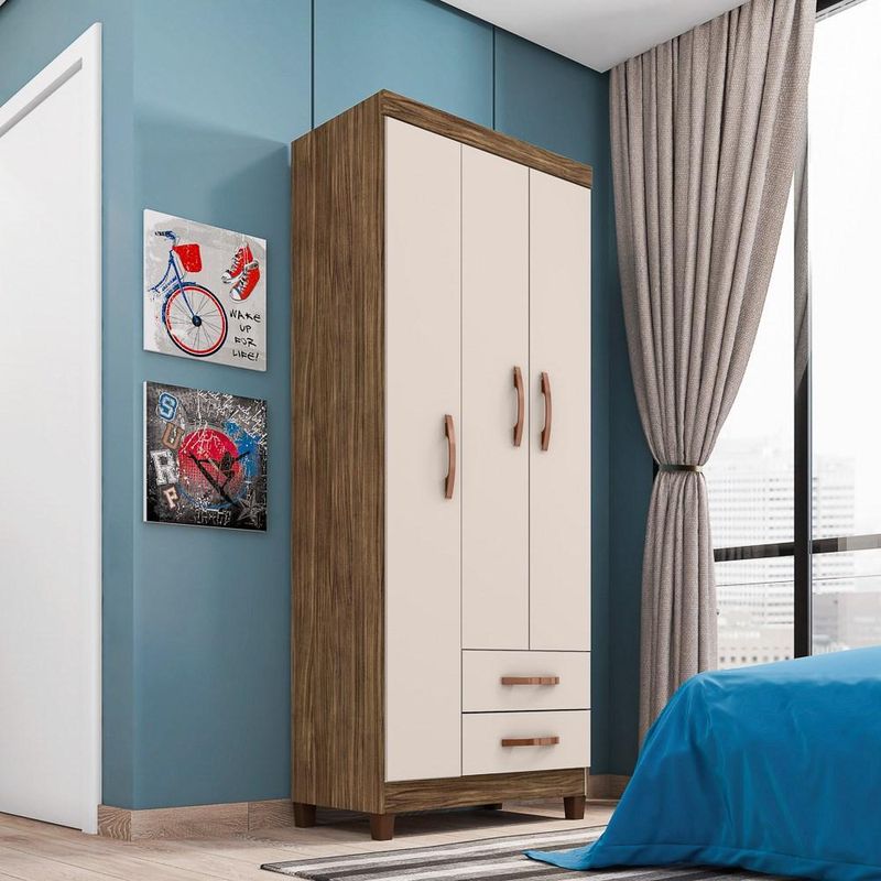 Qualidade é um fator muito importante para a escolha dos móveis, principalmente se eles podem auxiliar na rotina oferecendo praticidade. Esse é exatamente o caso do Guarda Roupa Solteiro 3 Portas, pois além da estrutura em MDP com acabamento em pintura UV texturizada, ele conta com uma excelente repartição interna para suas roupas. Sim, é isso mesmo! Além das 3 portas, ele possui 2 gavetas com corrediças metálicas que proporcionam deslize suave, cabideiros para pendurar suas roupas preferidas e prateleiras formando nichos internos. Inclusive, possui design cheio de personalidade que pode deixar seu quarto ainda mais elegante!