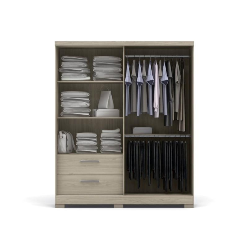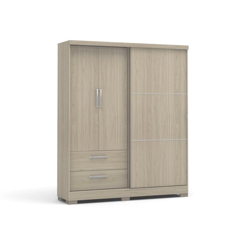 Guarda Roupa Solteiro C533 03 Portas 02 Gavetas Amêndoa, excelente produto com 02 portas convencioanis, 01 de correr, puxadores metálicos cromados e gavetas com corrediças metálicas, excelente aproveitamento de espaço para uma melhor organização, pode ser montado com ou sem pés e design diferenciado para agregar beleza ao ambiente. Confira e leve já!