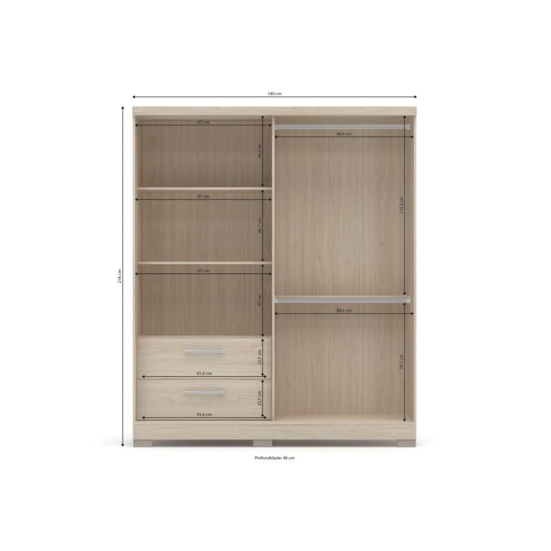 Dimensões do Produto: (Largura x Altura x Profundidade) 180 x 218 x 50 cm