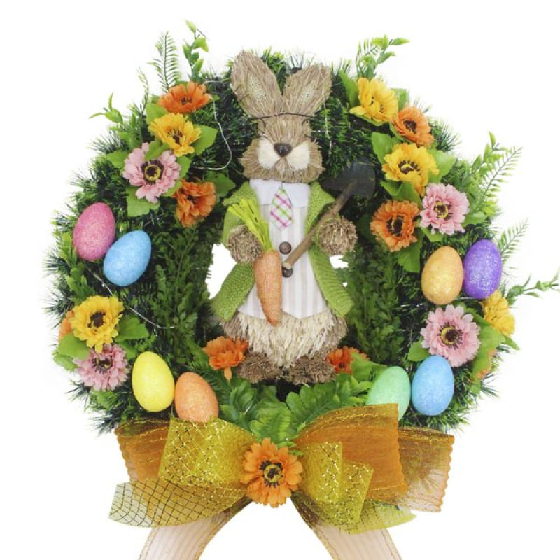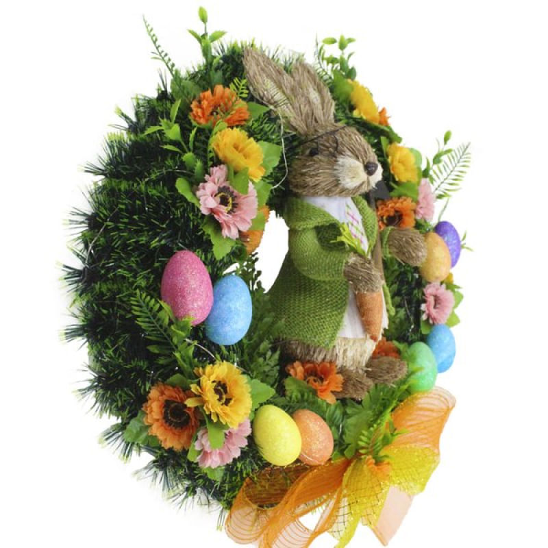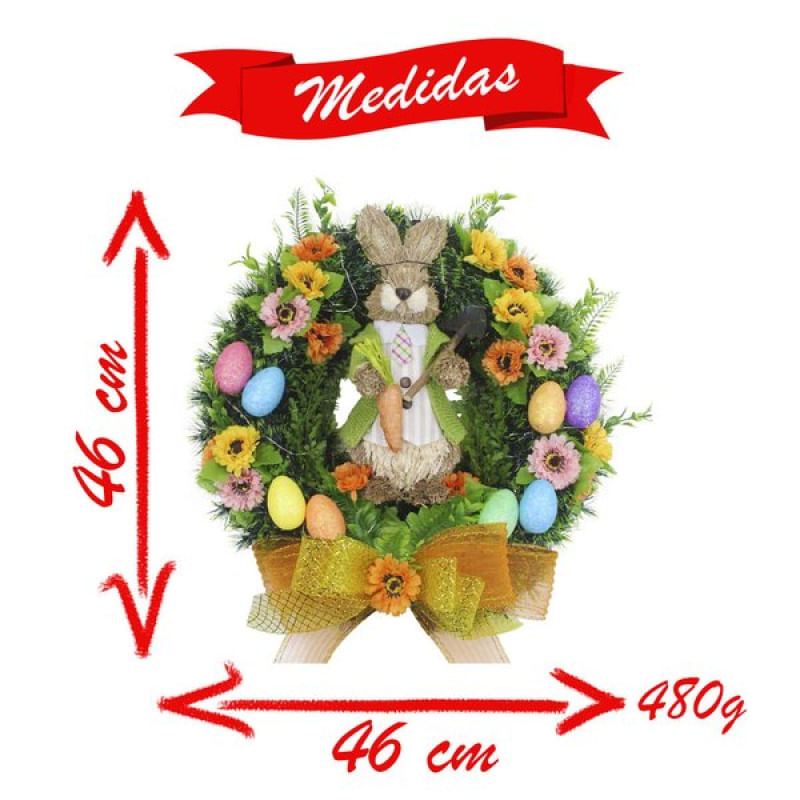 Guirlanda Enfeite Páscoa Coelhinho Palha Cenoura 46cm -