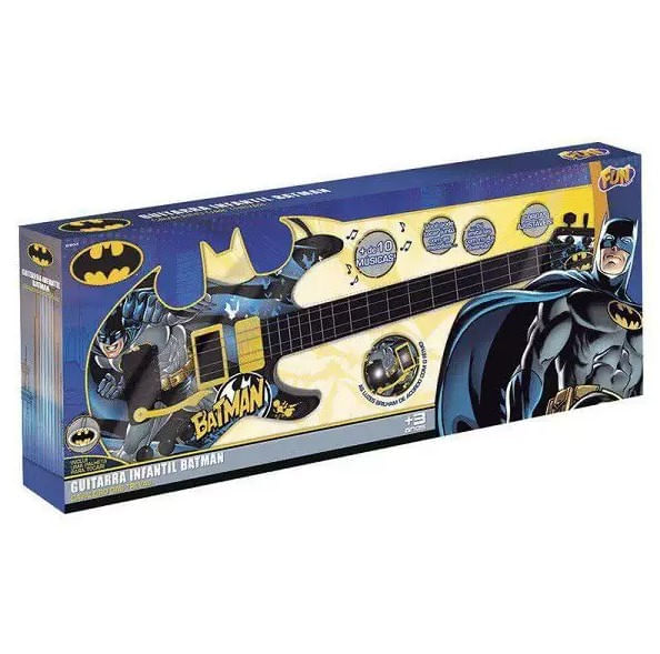 Com a guitarra do Batman Cavaleiro das Trevas da Fun Divirta-se, os meninos vão arrebentar nos acordes e se transformarem em astros da música! Eles podem tocar suas próprias músicas ou acompanhar as 11 músicas que já vem inclusas.