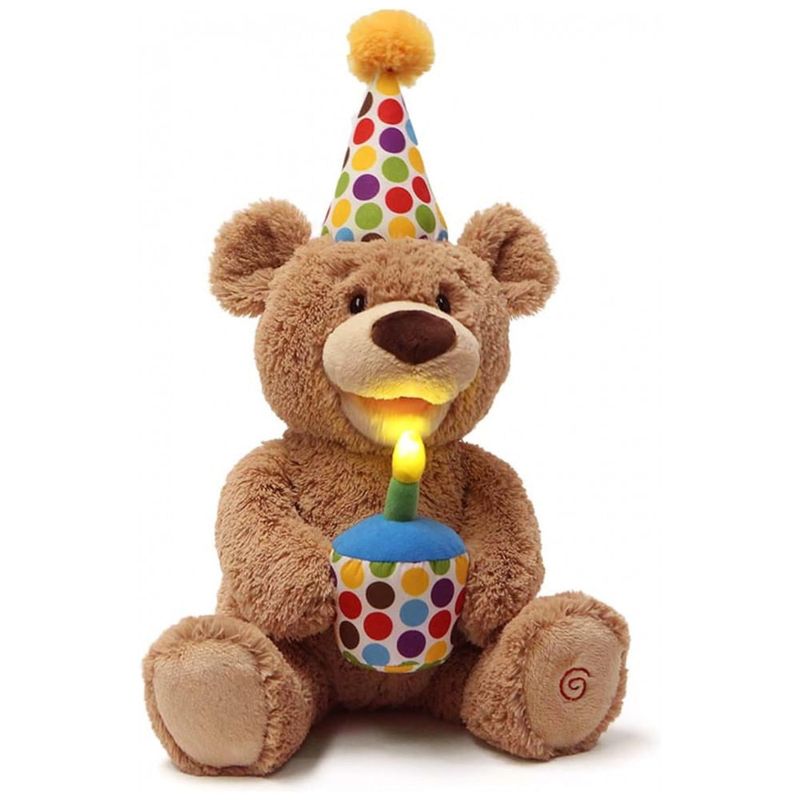 FELIZ ANIVERSÁRIO ANIMADO URSO DE PELUCHE DE PELUCHE Feliz Aniversário ursinho de pelúcia animado canta uma música de aniversário e move a cabeça e a boca enquanto a vela brilha em seu cupcake