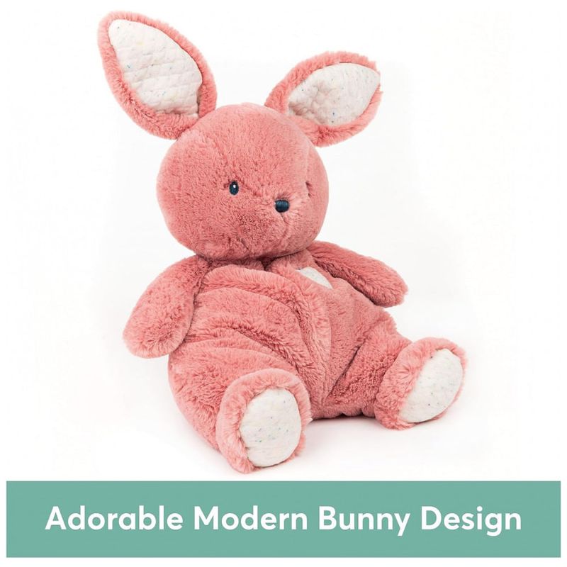 COELHO DE PELUCHE PARA BEBÊS Este coelhinho fofo e agradavelmente flexível é feito de pelúcia rosa premium com detalhes bordados s para bebês. Texturas acolchoadas em seu corpo, pés e come promovem o jogo tátil e imitam a sensação de um cobertor de segurança.