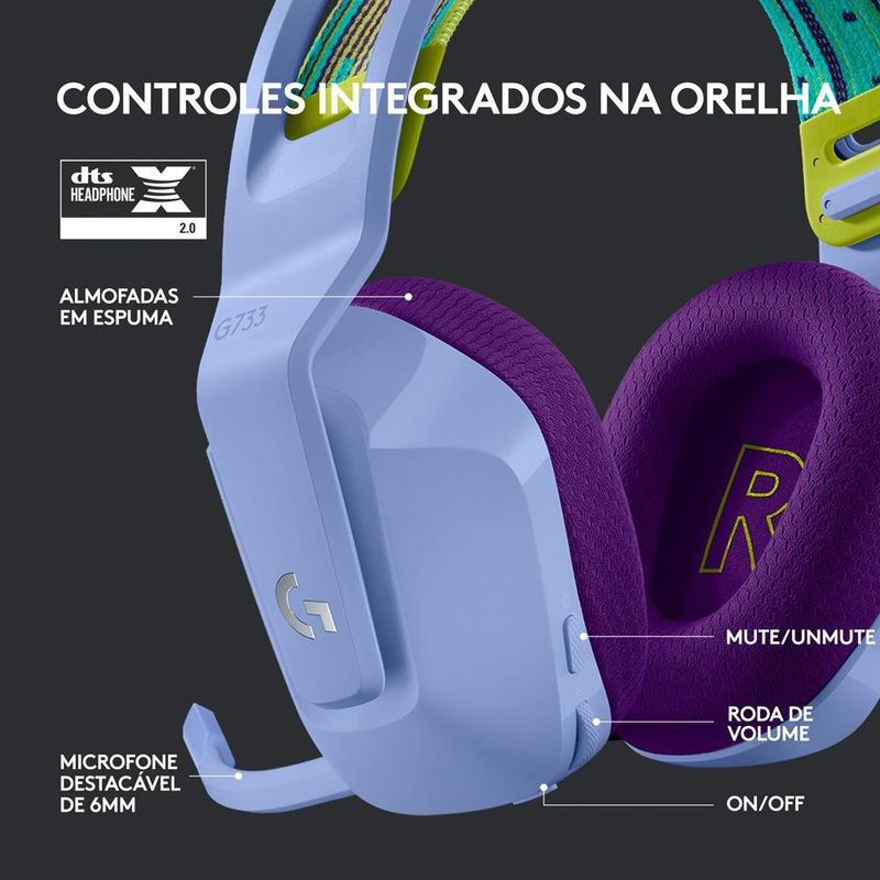 Headset Gamer Sem Fio Logitech G733 7.1 Dolby Surround RGB com Blue Voice para PC e PlayStation Lilás - 981-000889