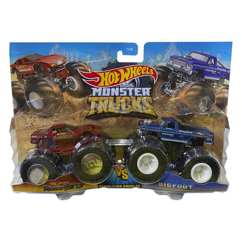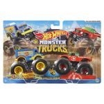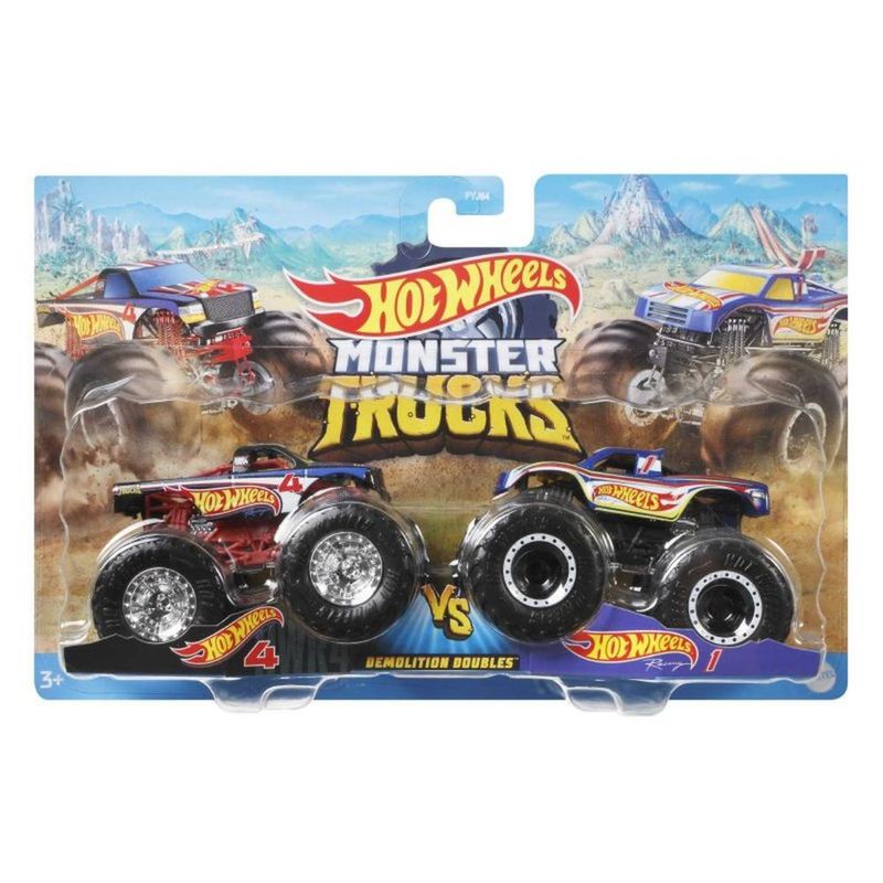 Coleção de rivais em um pacote de dois Monster Trucks Hot Wheels à escala 1:64, cada conjunto de dois Monster Trucks da coleção é perfeito para uma ação de colisão individual!