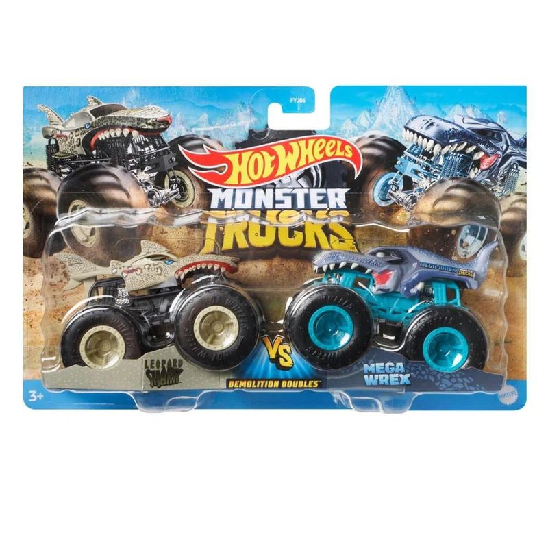 Estes dois pacotes de Monster Trucks que se preparam para ataques épicos são propositadamente combinados para batalhas frente a frente com suas rodas gigantes e grandes personalidades!