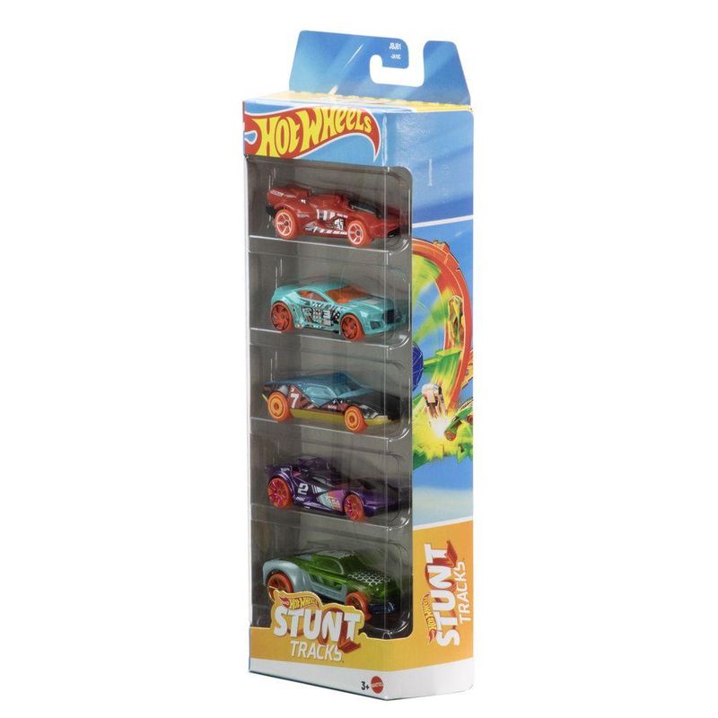 Ficha Técnica:Marca: Mattel;Nome do produto: Hot Wheels Pacote 5 Veículos Stunt Tracks;Idade recomendada: A partir de 3 anos;Selo Inmetro: 005142/2021;Contém: 5 carrinhos.