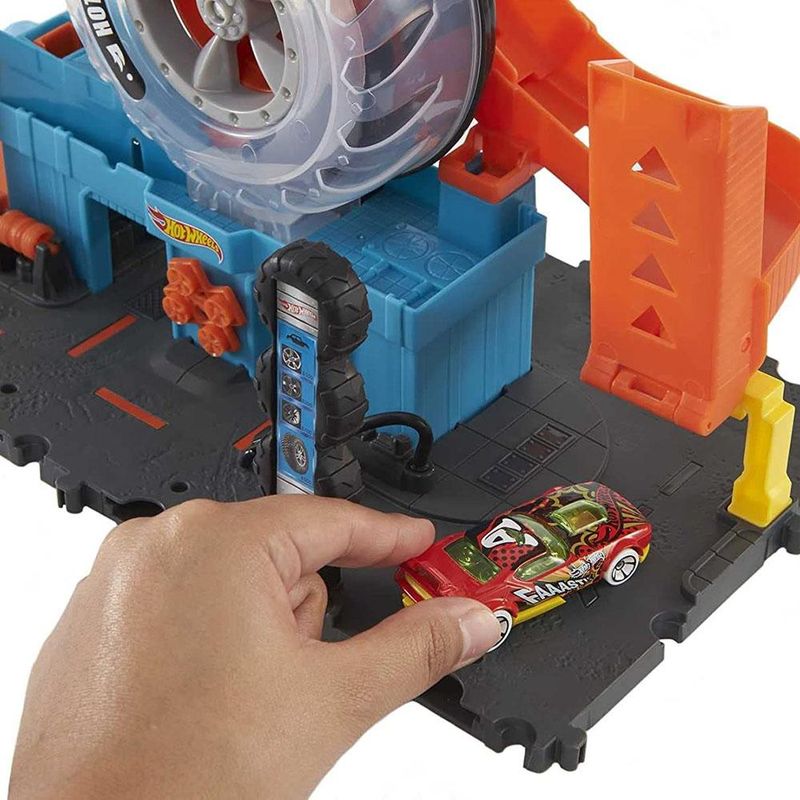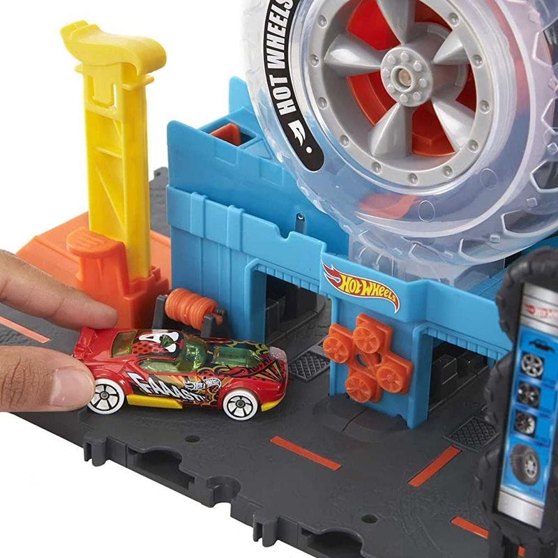 HOT WHEELS PISTA CITY SUPER LOJA DE PNEUS Quando as crianças usam o Hot Wheels City Super Twist Tire Shop para brincar, descobrem novas e emocionantes aventuras no melhor estilo Hot Wheels. Conduza o carro até o elevador, faça-o subir e deixe o carro deslizar pela incrível estrutura translúcida de pneu. Depois de girar a chave central, o carro se moverá pelos pneus na parte de cima do conjunto, onde ele poderá correr por aventuras ilimitadas. O conjunto vem com 1 carro Hot Wheels, mas dá para brincar com até 4 carros pela estrutura de pneu de uma vez só para que a brincadeira não acabe. Características Principais: Garantia contra defeitos de fabricação.