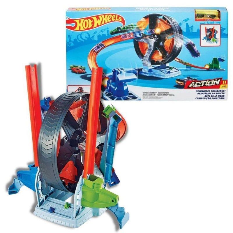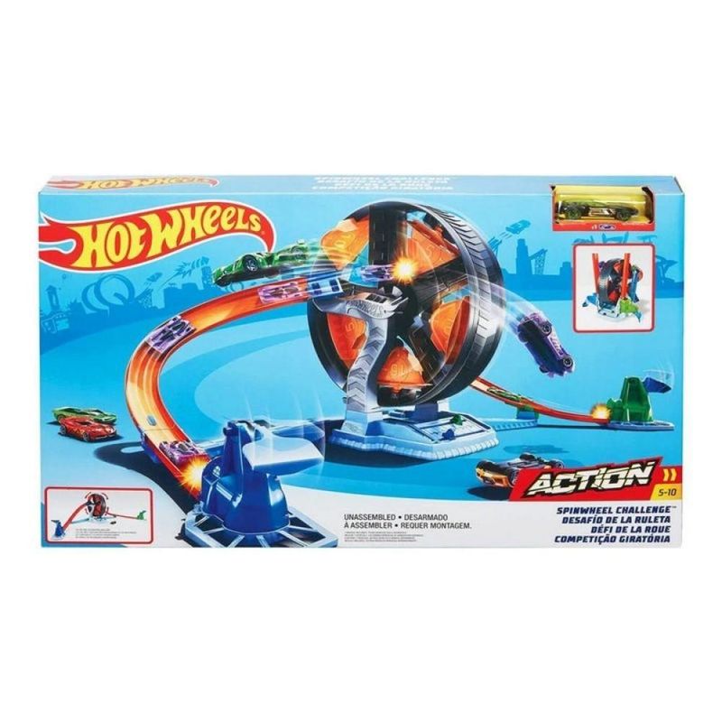 Hot Wheels Action Pista Competição Giratória GJM77 Você está pronto para este novo desafio? Com Hot Wheels, você deve colocar o maior número possível de carros na roda... Enquanto gira a toda velocidade! O competidor que tiver mais carros será o vencedor. Você aceita o desafio?