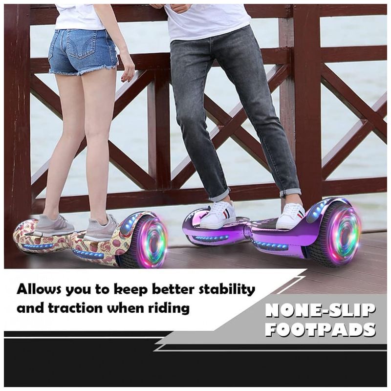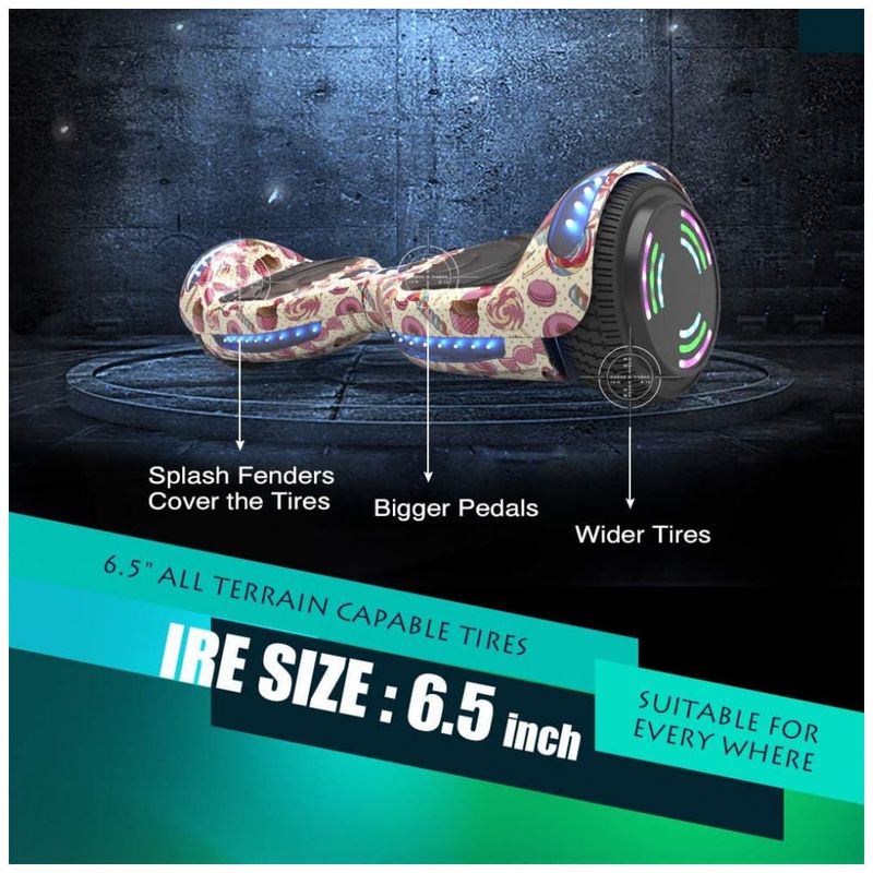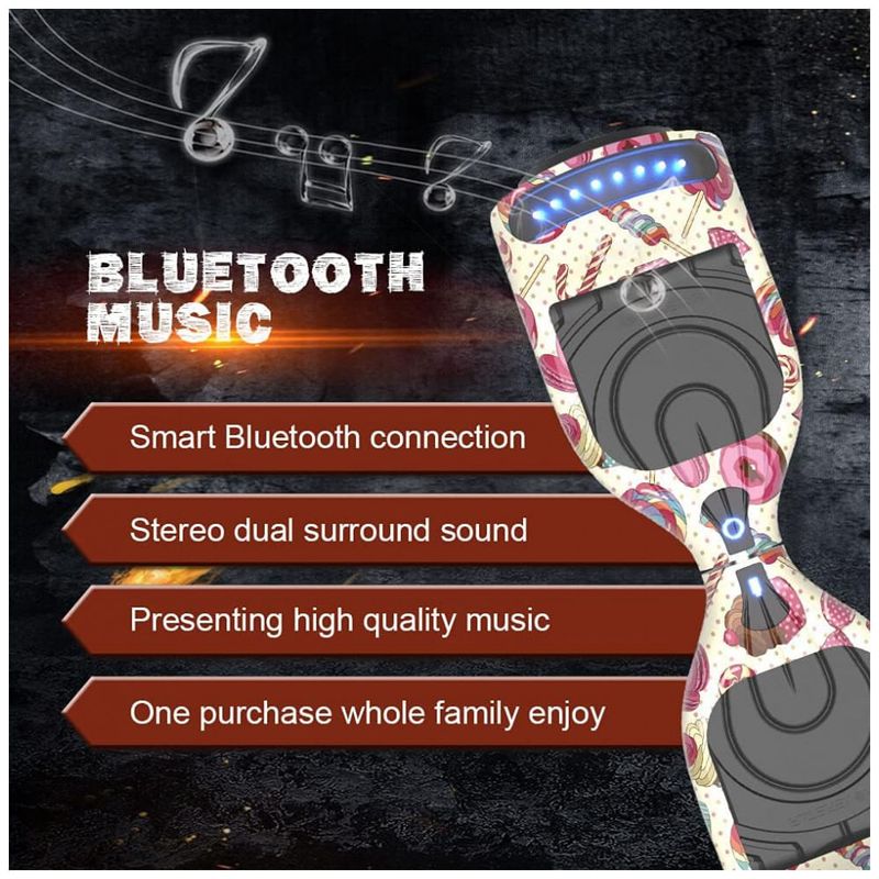 O hoverboard HS2.01 Terra dos Doces oferece segurança, tecnologia e diversão para todas as idades. Suas novas capas são feitas com material durável e incluem alto-falante integrado, permitindo ouvir música durante o passeio. Este hoverboard eletrônico possui base resistente, suportando até 75 kg, com velocidade controlada de forma precisa pelo usuário. Equipado com duas rodas LED piscantes e luzes dianteiras LED, proporciona estilo e visibilidade em qualquer trajeto. A bateria de 24V 4A permite atingir velocidade máxima de 14,5 km/h e autonomia superior a 12,8 km por carga completa. Ideal para crianças e adultos, este hoverboard oferece diversão garantida e transporte seguro, moderno e autobalanceado.