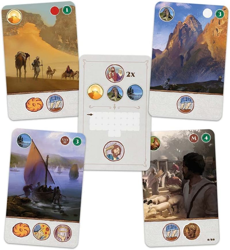 À medida que o jogo avança e eles obtêm cartas melhores, as possibilidades expandem-se. Depois de jogar a carta, os jogadores podem ativar a ação opcional ‘Visitar um Apóstolo’, desde que a sequência das suas cartas no tabuleiro pessoal corresponda à exigida no espaço da Última Ceia. Graças a esta ação poderemos colocar os 12 apóstolos ao redor de Jesus e obter a sua preciosa gratidão que se traduz em pontos de vitória. Finalmente, os jogadores poderão comprar uma carta do mercado (ou Mahane) e reabastecer a sua mão para o próximo turno.
