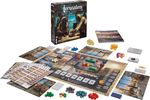 Conteúdo: 1 tabuleiro central, 4 tabuleiros individuais, livro de regras, 4 peças Revelação, 4 peças Armazém Bloqueado, 3 peças Lugar Bloqueado, 32 Fichas Favor, 28 peças Parábola, 50 fichas Oferenda, 15 peças Símbolo de Lugar, 60 moedas de Denários, 7 peças Julgamento no Sinédrio, 8 peças adicionais de Julgamento no Sinédrio, 10 cartas iniciais por jogador, 23 cartas Mahane, 10 cartas 33 d.C., 10 cartas iniciais adicionais por jogador para modo a 2 ou solitário, 25 cartas Barrabás (para o modo solitário), 4 cartas de ajuda para partidas a 3 ou 4 jogadores, 2 cartas de ajuda para partidas a 2 ou solitário, 1 peça Jesus, 12 marcadores de Apóstolos, 60 Seguidores, 30 fichas de Pedra, 30 fichas de Pão, 30 fichas de Peixe, 1 marcador Sinédrio, 4 marcadores de pontuação, 4 marcadores Favores Realizados.