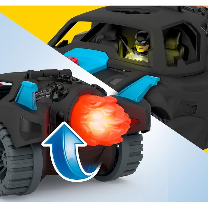 Diferenciais:Batmóvel Bat-Tech Deluxe com mini Batman incluso.Acessórios cheios de detalhes e funcionalidades.Luzes e sons ativados com o movimento do carrinho.Botão para acender as luzes do peito da armadura do Batman.