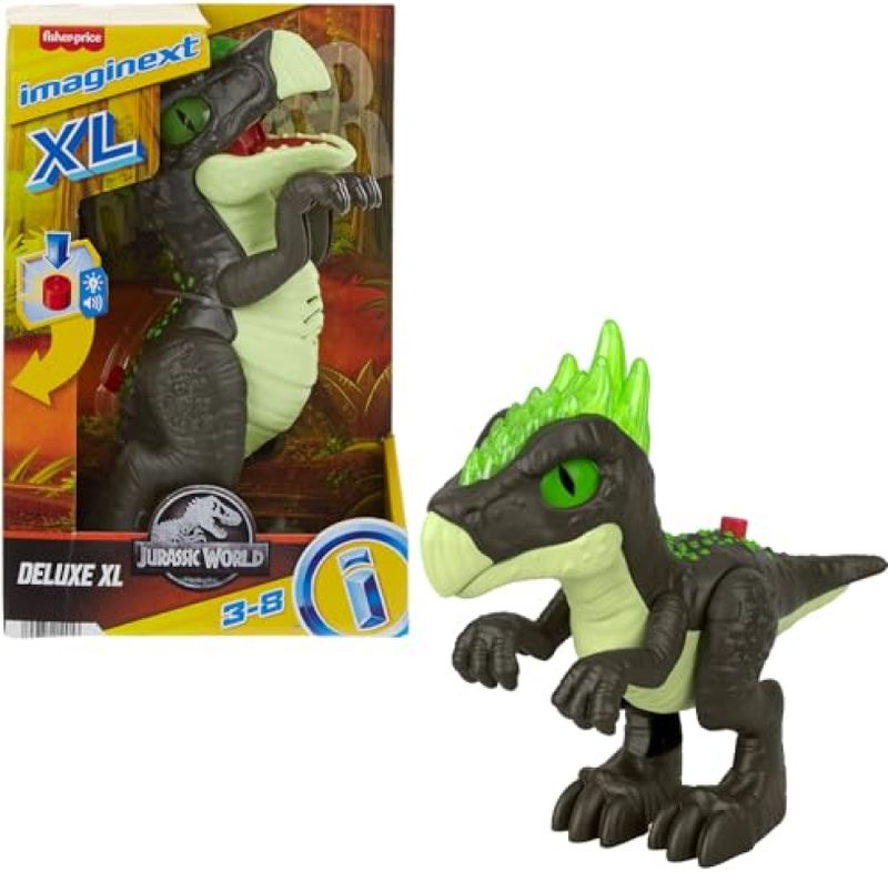 Chega um novo dinossauro do Jurassic Wold! Com o novo Dracorex na Versão XL a criançada poderá imaginar grandes aventuras. Pressionado o botão se ativarão efeitos de luz nos olhos e sons de dinossauros. Seus braços, pernas e bocas são completamente articuladas.