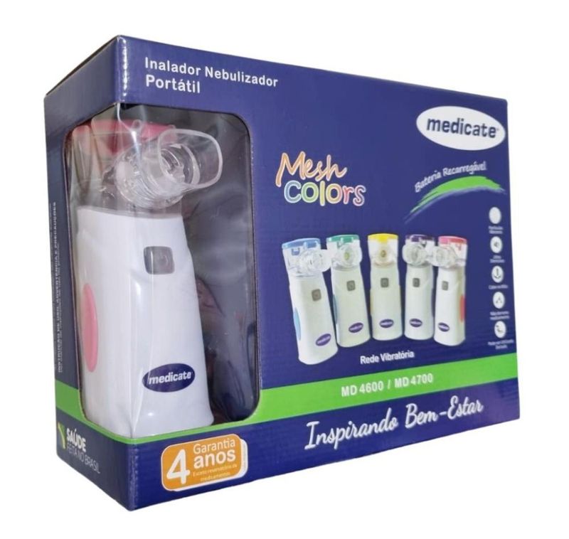 O Inalador Air Mesh Colors MD4600 Medicate é portátil, ideal para uma opção de uso residencial. Indicado para uso adulto e infantil, com design único e colorido, é leve e compacto, facilitando também o transporte para todos os lugares. É moderno, garante baixa taxa de ruído, tornando-o silencioso durante a aplicação. É eficiente, ele converte o medicamento prescrito em uma névoa de aerossol para facilitar a inalação, produzindo uma névoa de característica intensa, além de ter um exclusivo sistema de limpeza integrado. O Inalador Air Mesh Colors é extremamente eficaz para tratamentos de problemas respiratórios, sejam crianças adultos ou idosos, acompanha duas máscaras de tamanhos diferentes, para abranger tais públicos. Outra vantagem do Air Mesh Colors, é que ele pode ser utilizado para uma inalação sem derramar o soro ou medicamento em qualquer posição, inclusive deitado garantindo conforto e segurança na execução. Além de todos esses benefícios, o produto ainda garante baixo consumo de energia, é utilizado com bateria recarregável, o que deixa sua utilização ainda mais versátil, é bivolt automático, acompanha cabo USB (necessário adquirir uma fonte de alimentação separadamente). Se você busca um produto de uso diário de qualidade e excelente desempenho, o Inalador Air Mesh Colors MD4600 Medicate é sua escolha ideal!
