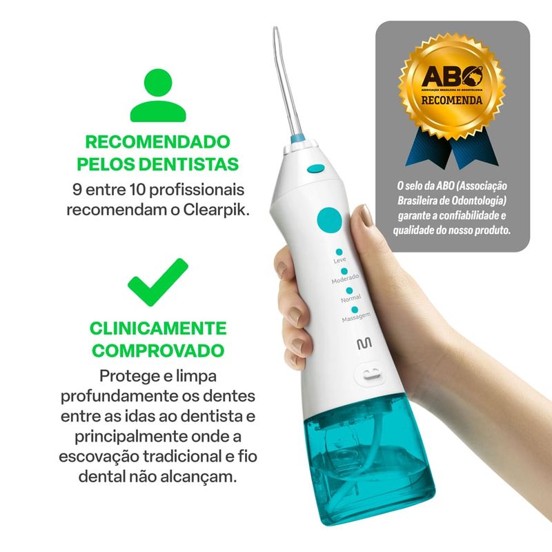 O uso do Irrigador Oral Clearpik Portable foi testado, aprovado e, hoje, é indicado pelos dentistas como um complemento realmente eficaz de higienização bucal diária, principalmente para quem faz uso do aparelho fixo e outras próteses dentárias.