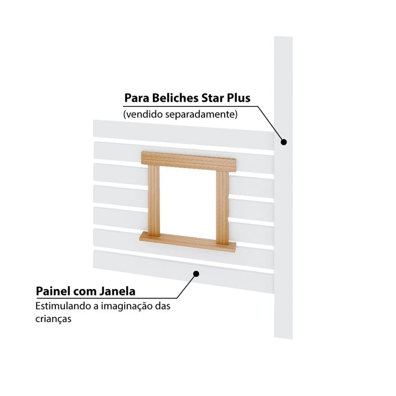 Com o Kit Janela o quarto do seu filho terá mais diversão e deixará a hora do sono ainda mais agradável. Feito com MDP que trás mais qualidade e durabilidade ao produto. Acessório perfeito para deixar o beliche Star Plus (vendido separadamente) mais lúdico.