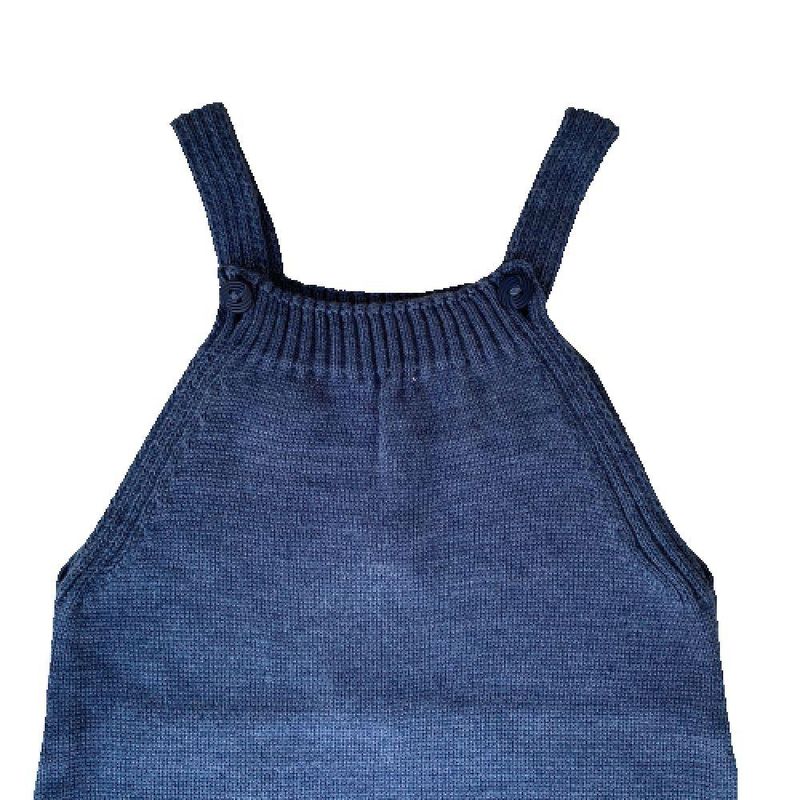 Jardineira Romper de Tricô Liso Tricô Kids Azul Mescla