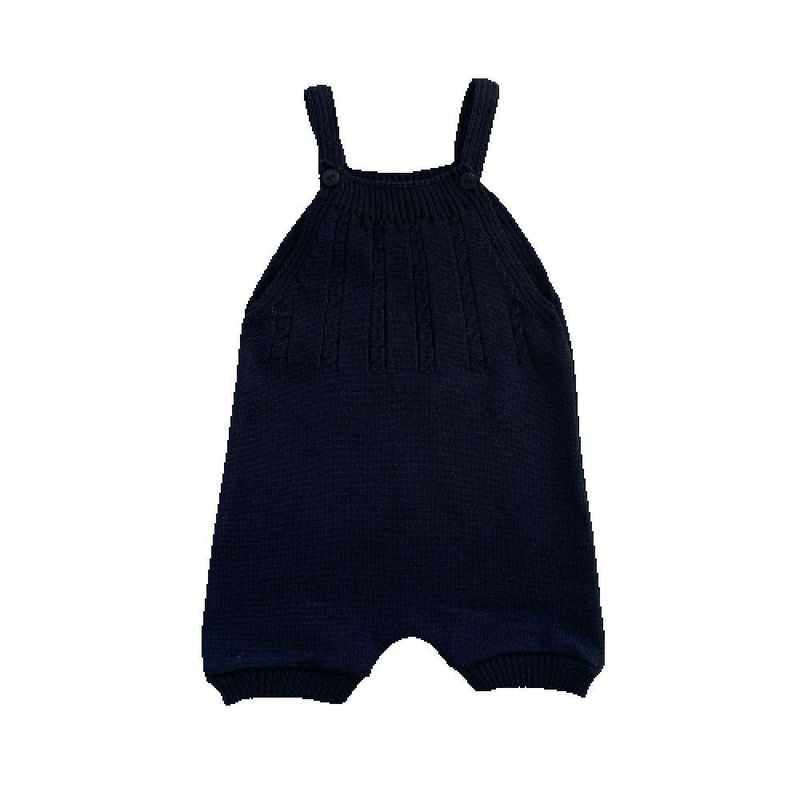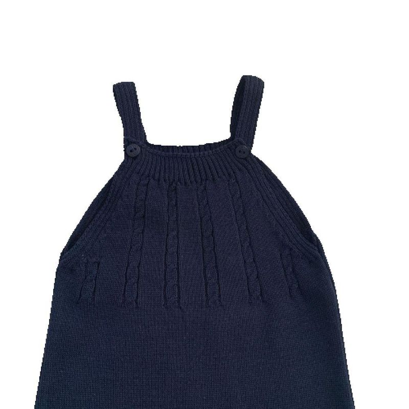 Jardineira Romper de Tricô Trançado Tricô Kids Azul Marinho