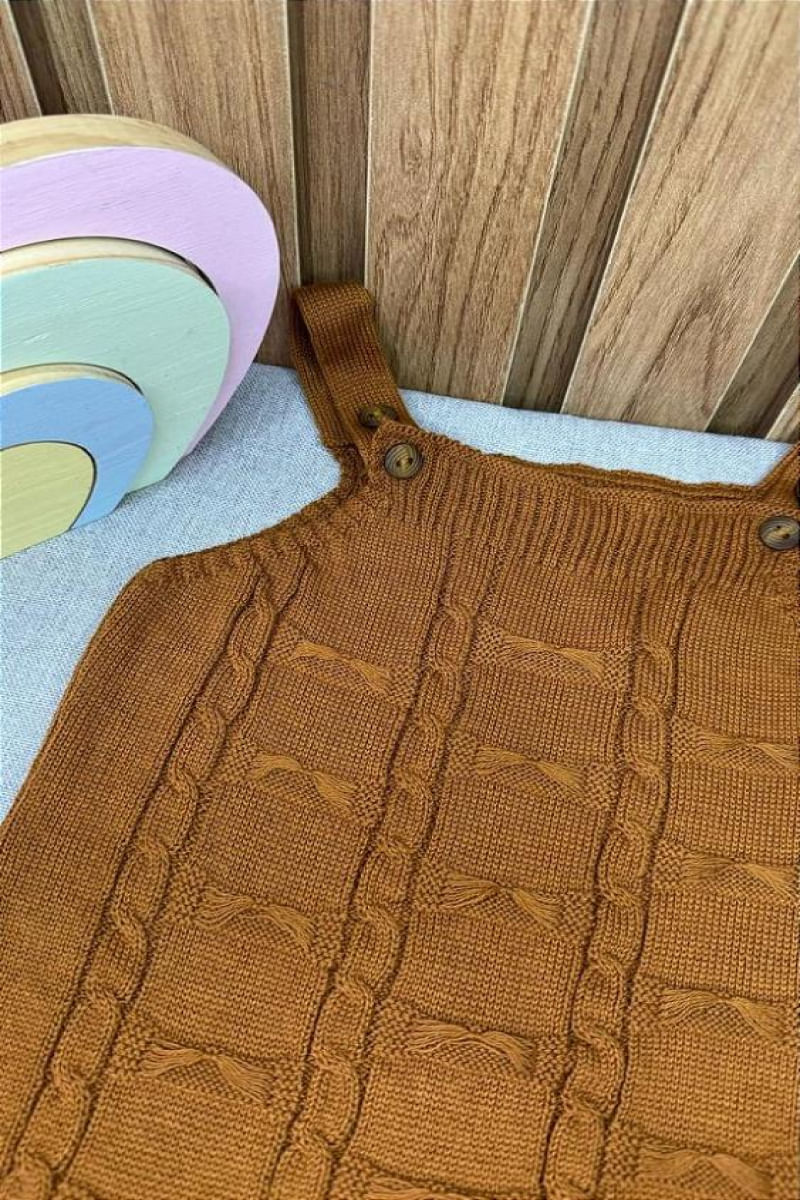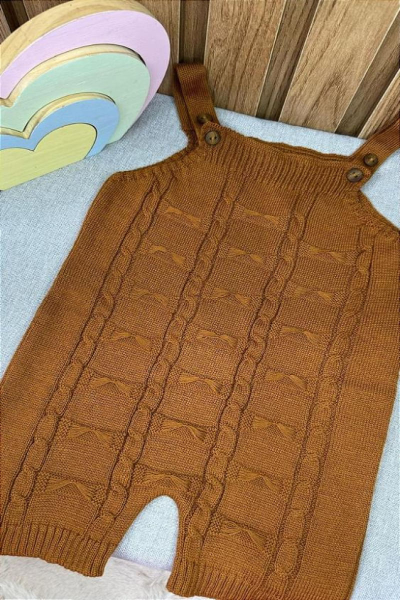 BRINQUEDOSJardineira Romper Trabalhado Caramelo Frontal