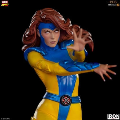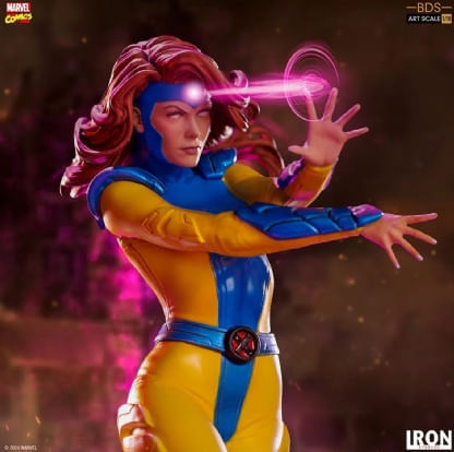 Flutuando sobre ondas de energia psiônica, a maior telepata (superior até mesmo ao Prof. X e Emma Frost) do universo Marvel, ergue-se em meio aos escombros da Mansão X, focando seu poder mutante nível Ômega, temida até mesmo pelos mais poderosos inimigos. Originalmente conhecida como Garota Marvel e depois Fênix, a Iron Studios não poderia deixar de somar ao mais grandioso diorama de batalha com estátuas colecionáveis dos X-Men já produzido, a figura de "Jean Grey BDS Art Scale 1/10 - Marvel Comics", com a heroína usando seus poderes contra os Sentinelas manipulados por Magneto. Além de poderosa telepata, telecinética e psiônica, quando Jean torna-se avatar da Força Fênix, ganha controle sobre o fogo cósmico, manipulação temporal e a habilidade de ressureição. Ao lado de Ciclope, além de membros fundadores dos X-Men, os dois até hoje são um dos mais antigos e adorados casais da Marvel.