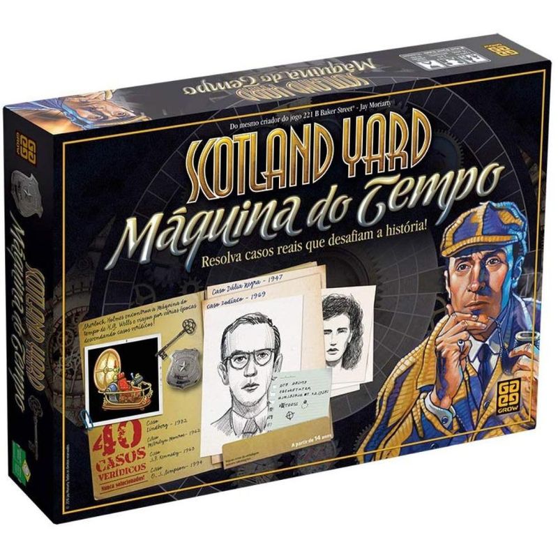 Sherlock Holmes e seu inseparável companheiro, Dr. Watson, encontraram por acaso H.G. Wells, escritor e dono de uma relíquia incrível: a Máquina do Tempo! Fascinado com a possibilidade de resolver casos não solucionados, Sherlock pede a máquina emprestada por alguns minutos para que possa viajar no tempo e chegar aos dias que se sucederam a grandes crimes... Não para evitá-los, pois isso resultaria numa ruptura na continuidade espaço-tempo, mas sim para que possa usar sua poderosa mente para resolvê-los! Contém 40 casos inéditos, baseados em histórias reais acontecidas nos Estados Unidos. Esses casos não foram solucionados na vida real, somente o autor deste jogo conseguiu esclarecê-los. Trata-se de uma obra de ficção. Alguns nomes usados nos casos foram ligeiramente alterados. Resumo do jogo Os jogadores leem juntos, em voz alta, um dos casos. A partir daí, andam pelo tabuleiro usando os dados e visitando os locais: TEATRO, SUPERMERCADO, FARMÁCIA, etc. Para cada local existe uma dica, numerada, que pode ser consultada no livro de Pistas e Soluções. Quando um jogador, após recolher pistas pelo tabuleiro, se julgar apto para solucionar o crime, anota a solução em sua folha, volta à casa início e lê o que escreveu. Caso esteja correto, a partida termina e ele vence o jogo. Caso esteja errado, retira-se da partida e torce para que ninguém mais tenha o poder de dedução do maior detetive de todos os tempos, Sherlock Holmes! Conteúdo: 1 tabuleiro, 1 livro de Pistas e Soluções, 40 cartões com casos, 6 conjuntos de chave + brasão cartonados, 6 peões coloridos, 1 bloco com folhas para anotação e1 dado e manual de instruções. Idade: +14 Jogadores: 2 a 6