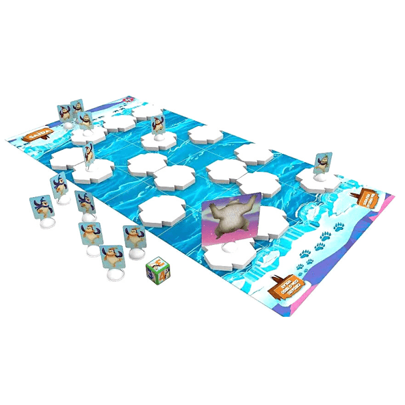 Você Tem Que Levar Todos 3 Pinguins Até o Polo Norte Antes Dos Outros Jogadores, Nos Pedaços de Gelo Que Deslizam No Tabuleiro. Mas Cuidado com o Urso Polar! Ele Também Desliza No Gelo e Pode Mandar Os Pinguins de Volta Para a "saída"! Fique Frio Porque a Diversão É Garantida Nessa Aventura!