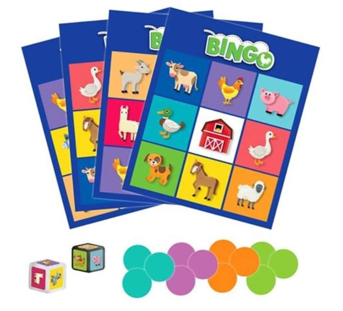 O Jogo Bingo Hasbro Gaming é uma ótima maneira de ensinar as crianças acima de 3 anos como reconhecer os animais da fazenda! E para brincar é muito fácil! Depois de rolar os dados, as crianças dizem o nome do animal e em seguida procura a imagem correspondente na cartela de bingo. Se possuírem uma imagem correspondente, as crianças devem colocar uma peça na imagem da cartela de bingo. O primeiro jogador a completar 3 imagens numa linha ou a cartela deve gritar bingo para ser o vencedor.
