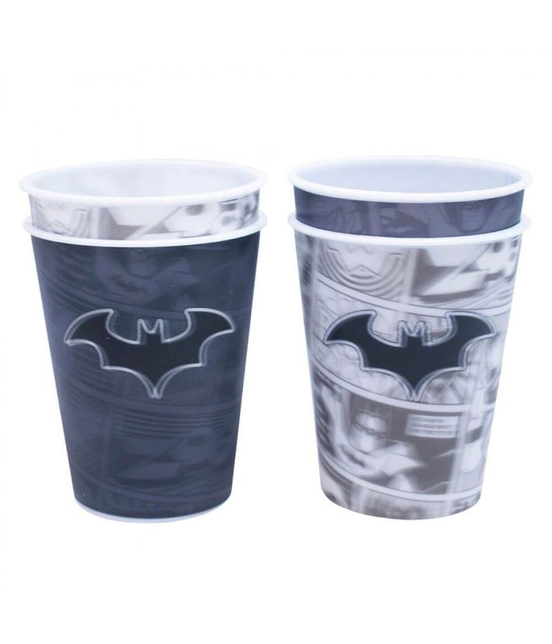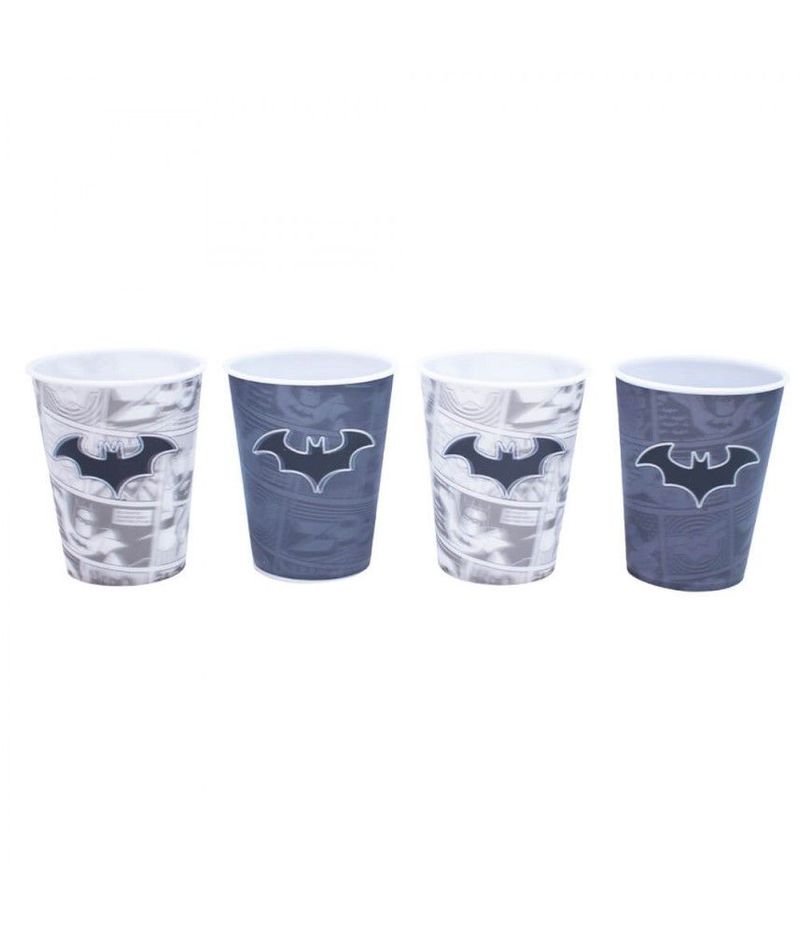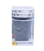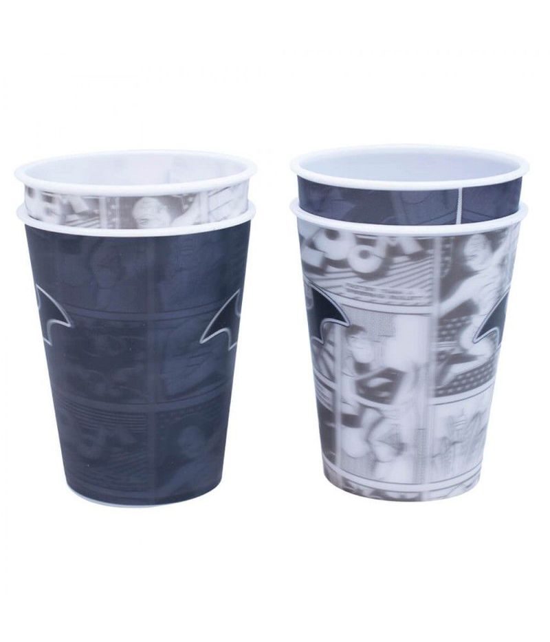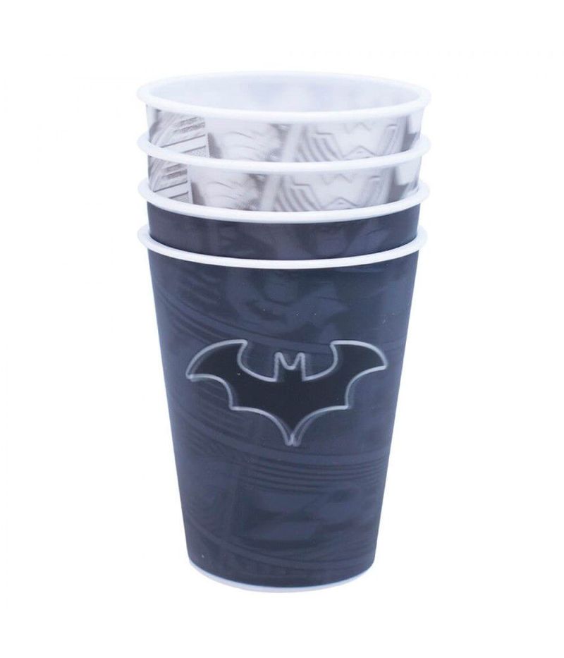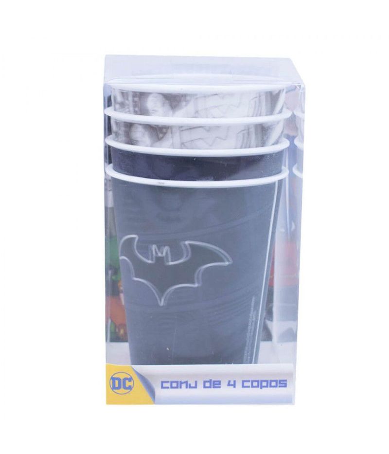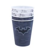 Jogo com 4 copos de plástico 3D de diversas cores e com o símbolo do Batman. Reutilizável, é perfeito para usar em festas temáticas. Produtos legais é só na Fings Store.