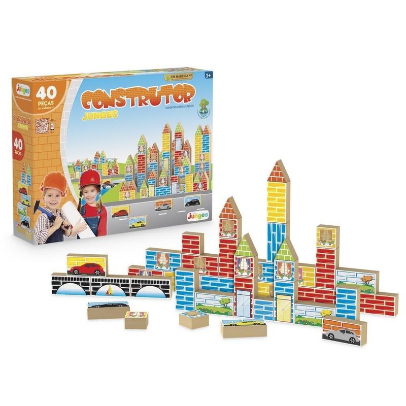 Jogo Construtor 40 Peças - Junges O Construtor Junges é um brinquedo de construção que estimula a imaginação e o desenvolvimento infantil de forma divertida e sustentável. Produzido com bloquinhos de madeira MDF de reflorestamento, com 15 mm de espessura, o kit é composto por peças de diferentes formas e tamanhos, permitindo à criança montar a cidade que desejar. Acompanha cartela de adesivos coloridos para personalizar os blocos, tornando cada criação única. Mais do que um passatempo, o Construtor Junges é uma ferramenta para o desenvolvimento da criatividade, coordenação motora fina, organização espacial e percepção visual. Monte, decore, crie cenários e reinvente quantas vezes quiser.