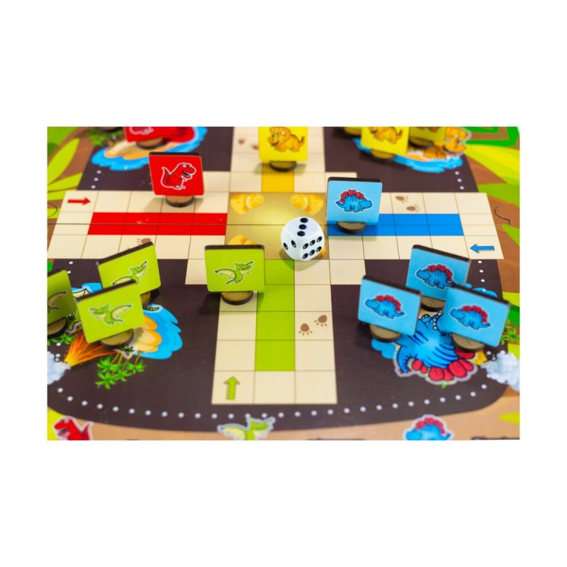 O objetivo do jogo é chegar primeiro com 4 dinossauros da sua espécie do ponto de partida até a casa central no tabuleiro indicado pela figura de ovos de dinossauro.