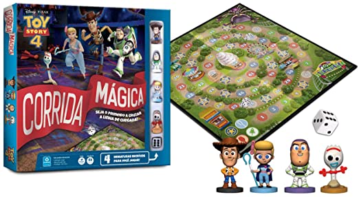 Jogue o dado e comece a Corrida Mágica. Cuidado onde você vai parar no caminho! Algumas casas te fazem avançar e outras te fazem perder o turno. Quem vai ganhar?
