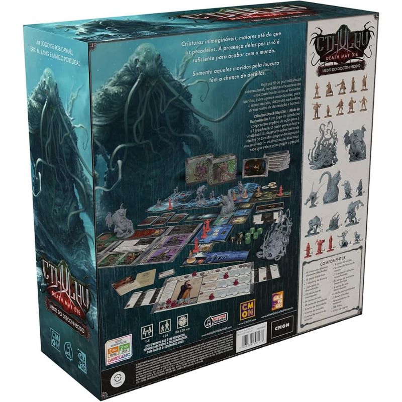 Cthulhu Death May Die: Medo do Desconhecido é um jogo cooperativo repleto de ação para 1 a 5 jogadores. O custo para salvar a realidade dos horrores sobrenaturais vindos de fora do tempo e do espaço é sua sanidade – e talvez mais. Mas você sabe que vale a pena pagar o preço!?