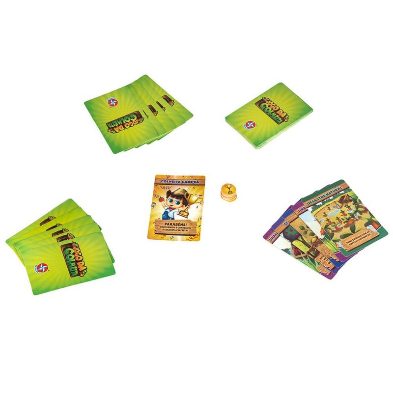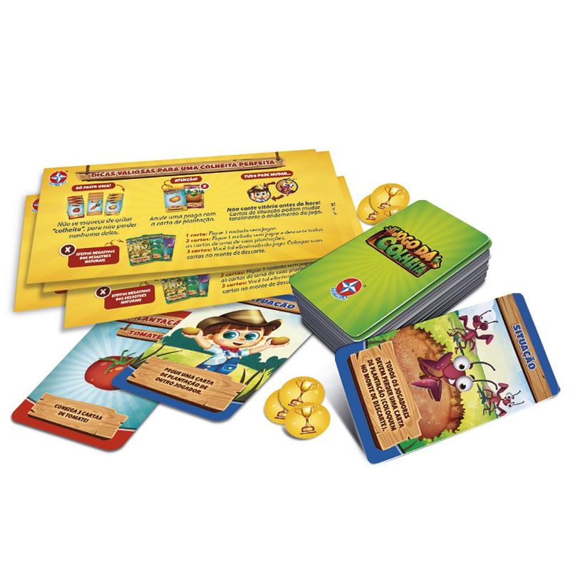 Seja o primeiro a conseguir uma colheita campeã! No Jogo da Colheita Estrela as crianças cultivam uma colheita perfeita no aconchego do seu lar. Elas juntam os amigos, e começam a plantar! Para dar emoção ao jogo, vocês também podem utilizar as cartas de situação, de desastre natural, e até colocar pragas nas plantações vizinhas! Um pouco de sorte e estratégia, garantem uma colheita campeã!