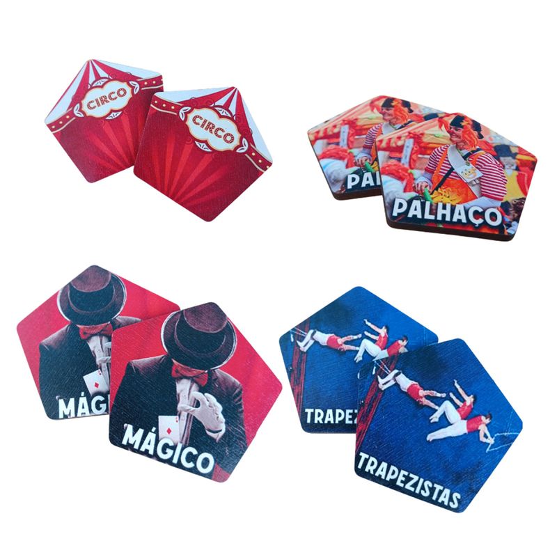 Composto por 10 pares de peças ilustradas com elementos que fazem parte do circo, como o palhaço, os malabaristas e outros símbolos desse mundo encantador, o jogo convida a criança a identificar e associar as imagens, tornando cada descoberta uma experiência de alegria e conhecimento.