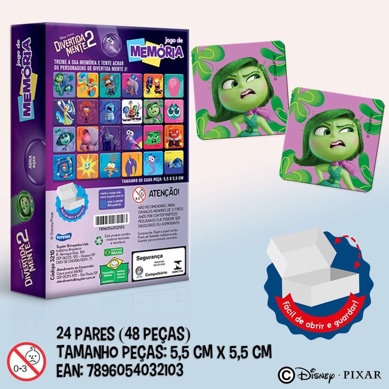 Não perca a oportunidade de brincar com a turma do Divertidamente2 e desenvolver habilidades importantes com seus filhos. Adquira já o seu Jogo da Memória Divertidamente2 com o EAN 7896054029875 e tenha a certeza de estar adquirindo um produto de qualidade e segurança.