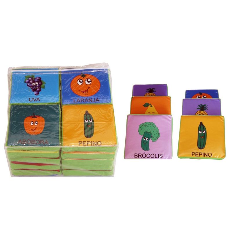 Jogo da memória gigante no modelo das frutas e legumes, confeccionado em espuma, revestido de corino. Impresso em bagum com tinta solvente.