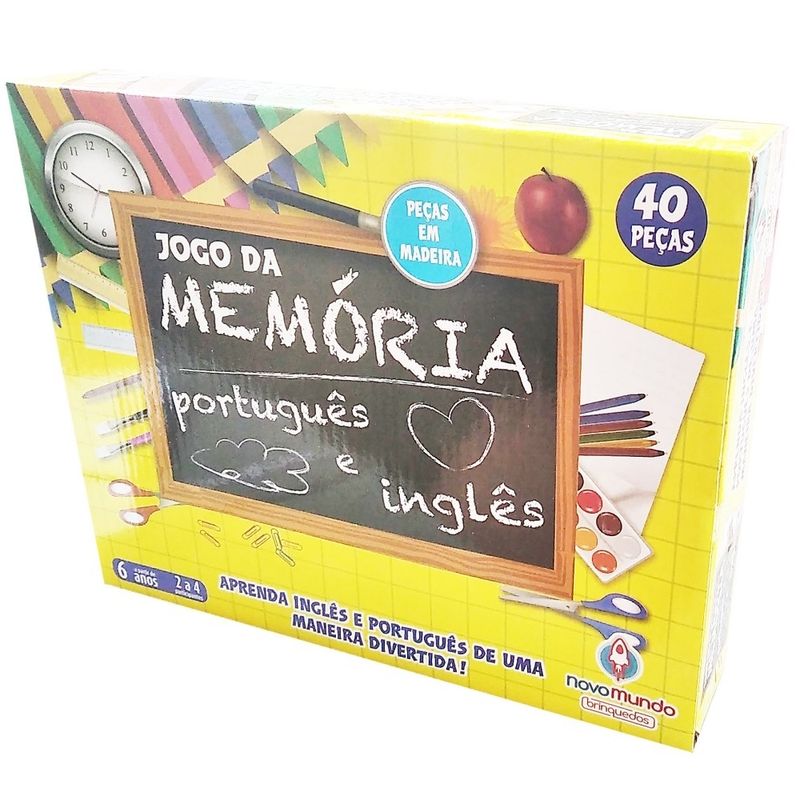 Jogo da Memória Português Inglês é aprender de maneira divertida. São 40 peças em madeira. A criança vai aprender de uma forma divertida.