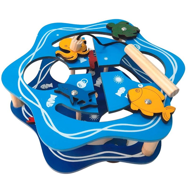 Com esta divertida pescaria, a criança é dasafiada a pescar os animais marinhos de uma maneira diferente, pois o jogo possui níveis de dificuldade, o que o torna muito interessante. Enquanto brinca a criança desenvolve seu raciocínio lógico e coordenação motora, pois para pescar ela deve passar a linha do anzol por dois labirintos sem deixar que o peixinho caia.