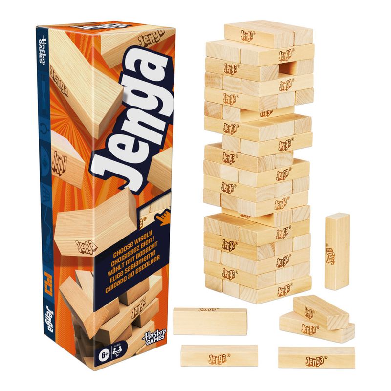 Neste jogo de Jenga, divirta-se com a jogabilidade clássica que os fãs adoram - ou atreva-se a jogar com o dado digital para desafios adicionais! Os jogadores retiram um bloco da pilha e tentam adicioná-lo ao topo sem derrubar a torre. O dado aumenta a emoção com 6 desafios de tirar o fôlego: vencer o relógio, empilhar 2 blocos diferentes, escolher um oponente para jogar na sua vez, usar apenas os polegares, formar uma equipe ou colocar o bloco em qualquer lugar, exceto na linha superior. Quanto mais blocos de Jenga são puxados, mais instável fica a torre, até que ela se espatifa! Este jogo de madeira vem com uma capa de empilhamento para facilitar a montagem e o armazenamento. É uma ótima opção para quem está procurando jogos para a família ou jogos noturnos para grupos. E os jogos de festa para crianças e os jogos de tabuleiro para festas são divertidos presentes de férias ou de aniversário para crianças a partir de 6 anos Jenga is a registered trademark of Pokonobe Associates. Copyright Pokonobe Associates. Used under license from Pokonobe Associates. Used under license from Pokonobe Associates. Hasbro and all related trademarks and logos are trademarks of Hasbro, Inc. Copyright Hasbro.