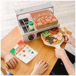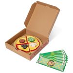 Este conjunto de fazer pizza de madeira de 41 peças é perfeito para criar pizzas personalizadas e fresquinhas. O conjunto inclui molho de feltro e queijo, crosta de madeira e coberturas de madeira para escolher, como calabresa, azeitonas, cogumelos e pimentões. Além disso, o conjunto vem com um forno de pizza embutido na bancada de armazenamento e serviço, uma coqueteleira de queijo ralado, uma pá de madeira, um cortador de madeira, uma caixa de pizza, um cardápio reutilizável para fazer pedidos, um guia de preparo de pizza e dinheiro fictício para pagar pelo pedido.