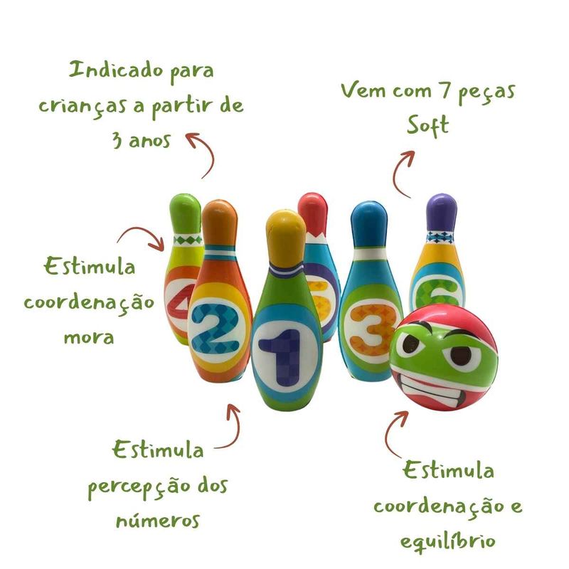 Com cores vibrantes e formas amigáveis, o boliche promove o estímulo visual, enquanto o toque nas peças desenvolve a percepção tátil. Ao lançar a bola e derrubar os pinos, a criança exercita a coordenação motora, o equilíbrio e a noção de espaço, além de se divertir muito!