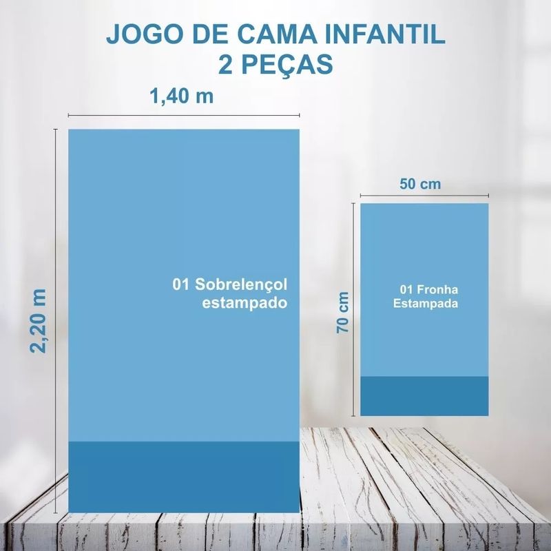 Contém: -Solteiro com 2 peças - 1 Fronha (50 cm x 70 cm), (1 Sobrelençol (1,40 m x 2,20 m)