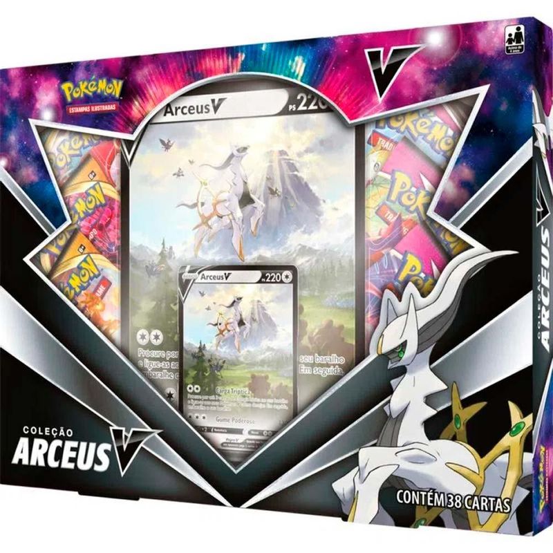 Jogo de Cartas - Pokemon - Colecao Arceus V - Arceus - Copag: Atinja poderes supremos com Arceus V! Batalhe com o majestoso Pokemon Alfa que esta pronto para aumentar o poder da sua equipe. Nesta colecao, voce ira encontrar as cartas perfeitas para o treinador que busca por poder, contendo uma super carta holografica promocional Arceus V, pacotes de booster do Pokemon Estampas Ilustradas, entre outros itens raros e promocionais! Vamos capturar todos! • Detalhes - Pratico, chamativo e divertido - 38 otimas cartas para sua colecao - Variacoes de cartas e estrategias - Linda combinacao chamativa de cores - Materiais confeccionados de alta qualidade - 1 carta grande de 133mm x 187mm - Adquira as cartas do Pokemon que constroi lendas sobre seu nascimento ter sido antes mesmo do universo - Box inteiramente inspirado no Pokemon ancestral - Cartas Holograficas promocionais - Tipo de rareza: Promocional INFORMACOES: • Produto: Jogo de cartas Pokemon Box Arceus V • Colecao: Arceus V • Marca: Copag • Cores: Estampado • Tipo: Jogo de Baralho • Categoria: Jogo de Cartas • Dimensoes (Carta) (C x A): 63 x 88 mm • Dimensao (Carta extragrande) (C x A): 133 x 187 mm • Conteudo: 01 carta holografica promocional, 01 carta extragrande, 06 pacotes de booster do Pokemon Estampas Ilustradas e 01 carta codificada Pokemon Estampas Ilustradas Live • Cada jogador deve ter um baralho de 60 cartas de Pokemon para jogar. • Recomendacao: para criancas maiores de 04 anos de idade ESPECIFICACOES: • Referencia: 30748 • Codigo de Barras: 7896192307477 • Embalagem (C x A x L): 29 x 22 x 03 cm • Embalagem (Peso): 0,245 kg • Material / Composicao: Papel cartonado • Registro: 008 140/2021 • Certificado: Orgaos Autorizados - OCP´S (Organismos de Certificacao de Produtos) BENEFICIOS DE BRINCAR: - Eleva a autoestima - Exercita a memoria - Estimula o raciocinio - Exercita o imaginario - Desenvolve a criatividade - Desenvolve percepcao visual - Desperta a atencao e curiosidade - Desenvolvimento neuropsicologico - Estimula habilidades motoras basicas - Incentiva a comunicacao e linguagem - Desenvolve aspectos emocionais e afetivo - Estimula o reconhecimento de formas e cores AVISO: - As imagens sao meramente ilustrativas - Os tamanhos e medidas sao aproximados - As cores e estampas dos produtos podem ter variacoes - As informacoes sao de responsabilidade do fabricante ou fornecedor