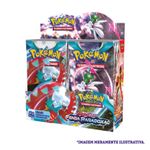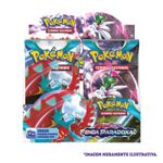 Mergulhe nas nuvens e explore uma terra que parece estar desvinculada ao tempo! Com ataques ferozes, Pokémon Ancestrais, como Lua Estrondo ex e Choque Areia ex, aparecem ao lado de Pokémon Futuristas sintéticos, como Valentia Férrea ex e Mãos Férreas ex. Enquanto isso, Garchomp ex, Mewtwo ex e outros podem Terastalizar para ganhar novos tipos, ao mesmo tempo que Armarouge ex,