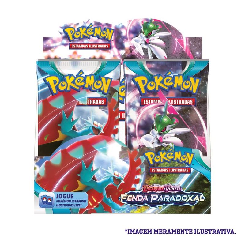 Gholdengo ex e mais Pokémon ex juntam-se à batalha. Muitas aventuras estão à sua espera quando as linhas do tempo colidem na expansão Escarlate e Violeta — Fenda Paradoxal do Pokémon Estampas Ilustradas."