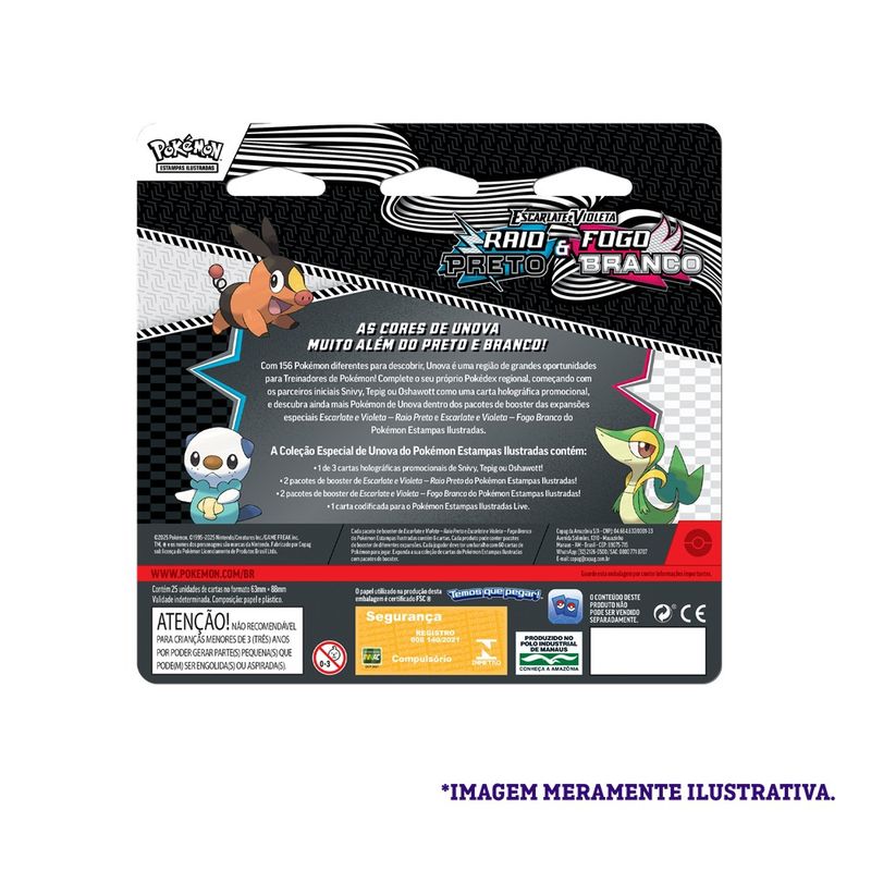 Dizem que o Pokémon Mítico Victini cria uma energia infinita que pode compartilhada com seus amigos, e agora você pode se unir a ele nos seus ser baralhos do Pokémon Estampas Ilustradas! Nesta coleção, você vai receber uma promocional com ilustração rara, uma carta holográfica paralela carta holográfica premium de Victini e uma carta extragrande. Você também vai encontrar ainda mais Pokémon da região de Unova nos pacotes de booster das expansões especiais Escarlate e Violeta — Raio Preto e Escarlate e Violeta — Fogo Branco do Pokémon Estampas Ilustradas".