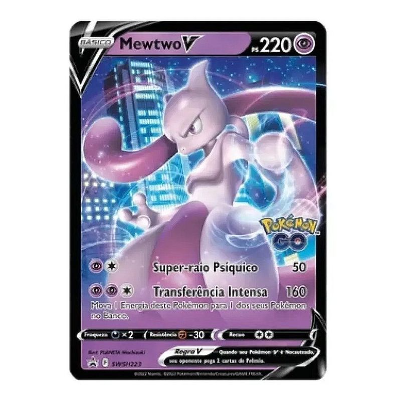 Mewtwo V ataca de forma grandiosa e, em seguida, fortalece seus outros Pokémon ao mover energia para o seu banco! Execute alguns ataques rápidos com Starmie e Cinccino, coloque mais energia em jogo com Indeedee e faça com que Hatterene troque seu Pokémon ativo para que você possa acertar um grande golpe com lunatone. Cartas de treinador úteis, com Módulo atrair e Incubadora de Ovo, tornam mais fácil encontrar o Pokémon que pode colocar você no caminho da vitória!