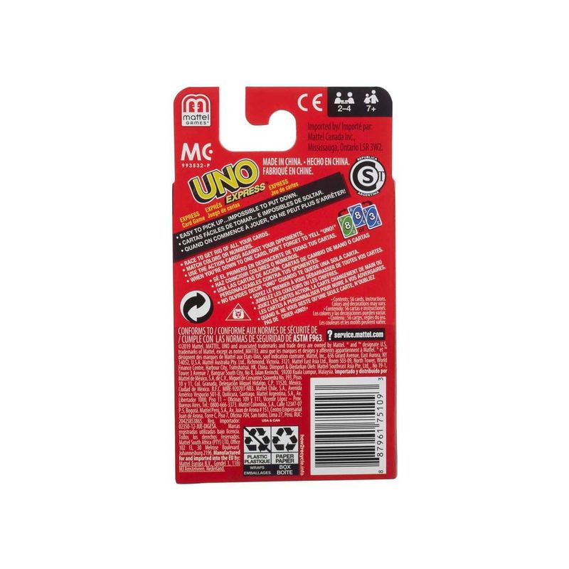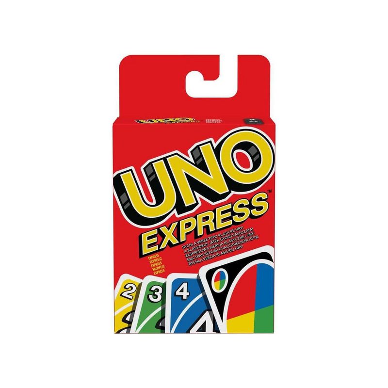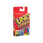 UNO é o adorado jogo clássico de cartas da família que é fácil de levar e impossível de largar. O UNO Express¿¿¿ oferece toda a diversão do UNO mas com jogadas mais rápidas, permitindo que os jogadores terminem as rodadas mais rapidamente! O baralho menor torna esta versão do UNO portátil e fácil de levar para qualquer lugar. Os jogadores se revezam para combinar a cor ou o número da carta em suas mãos com a carta atual mostrada na parte superior do baralho. As cartas de ação especiais oferecem mudança no jogo e cada uma delas executa uma função para ajudar você a derrotar seus oponentes. Quando estiver apenas com uma carta na mão, grite "UNO!. Ganha o primeiro jogador que se livrar de todas as cartas na mão antes dos seus oponentes. Excelente jogo para uma noite de competição para 2 a 4 jogadores. Inclui 56 cartas e instruções. As cores e as decorações podem variar.
